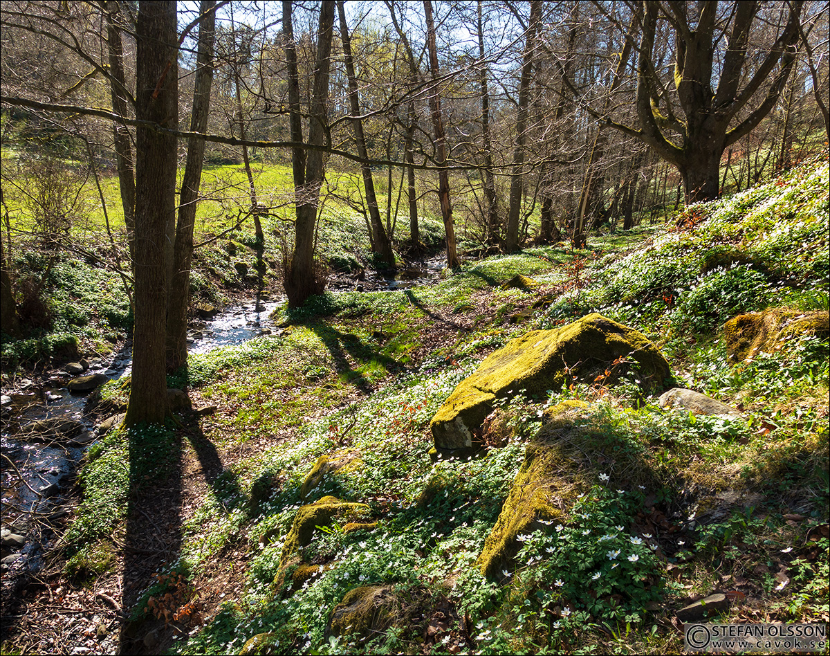 Blommade gjorde däremot vitsipporna. Hagmarkerna och de branta slänterna ner mot den lilla Skogsmöllebäcken var bitvis helt täckta med de gnistrande vita små blommorna. Att vädret dessutom var helt fantastiskt gjorde så klart inte upplevelsen sämre.