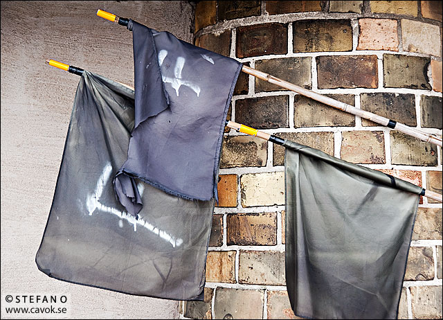 I små fiskehamnar brukar jag ofta hitta en mängd spännande motiv. Den här bilden gillar jag skarpt, men jag kan inte riktigt säga vad det är. Kanske är det strukturen på de vindpinade flaggorna som fiskarna använder att till att markera ut sina nät eller de sköna färgtonerna på den gamla tegelkolonnen. Antagligen är det en kombination.