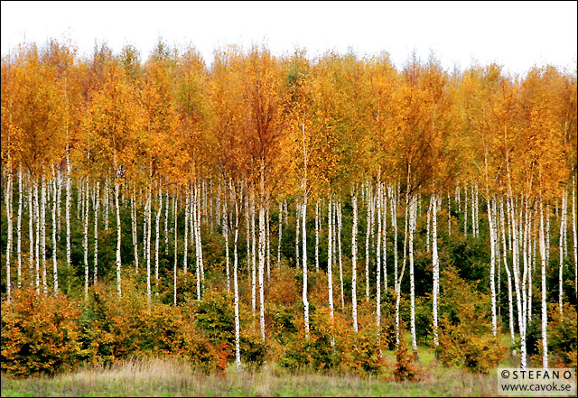 Hösten har helt klart sina goda sidor. Björkarna är bland de första träden som övergår i en härligt gyllengul ton. Bilden skulle kunna ha varit tagen idag, men den är flera år gammal.