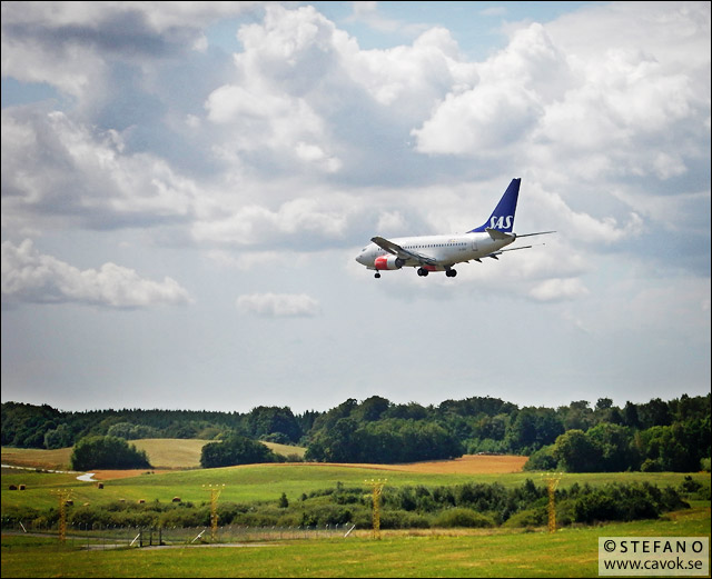 På ängshöjden några hundra meter från inflygningsljusen har man en fin vy över rullbanan och flygplanen som startar och/eller landar kommer ganska nära. Kanske en lämplig plats om man är intresserad av flightspotting? Boeing 737-planet på bilden bör vara SAS flight SK117 från Arlanda.