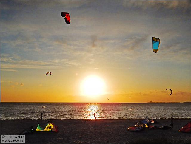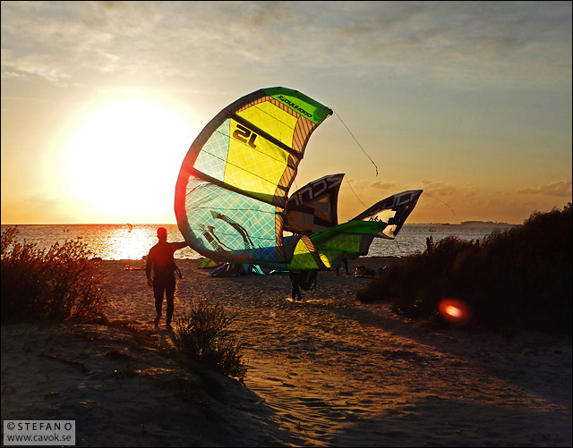 Kitesurfing, eller draksurfing som det heter på svenska, har blivit en mäkta populär aktivitet längs Skånes kuster. Vid Habo Ljungs camping strax norr om Lomma arrangeras det kurser för den som är nyfiken på att testa. Så här såg det ut längs stranden när jag cyklade förbi igår kväll.