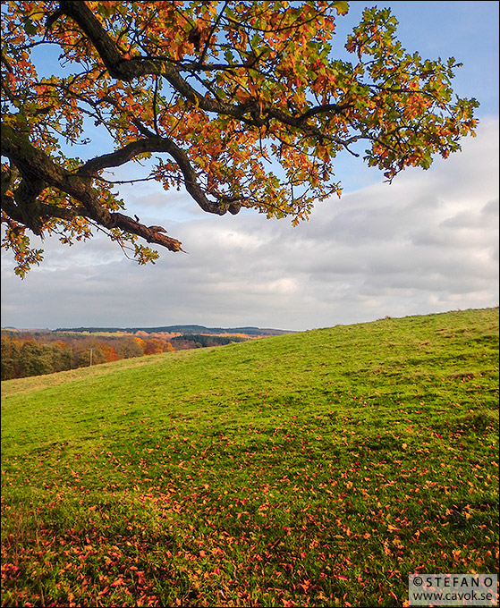 Det vore fel att påstå att de senaste dagarnas novemberväder har varit fotovänligt. Så nytagna bilder har jag ganska ont om just nu. Men lyckligtvis finns det en del att hämta i arkivet. Som den här höstbilden från beteshagarna vid Skoggård strax intill Häckebergasjön.