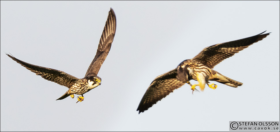 Just den här lärkfalken jagade dock trollsländor. Om ni noga studerar bildmontaget ovan ser ni att den har en slända i vänsterklon som den sedan äter upp i flykten. Smidigt och synnerligen effektivt.