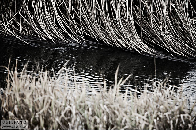 Vet inte riktigt hur jag ska beskriva den här bilden. Den är tagen vid Höje å för ett par dagar sedan och jag har gjort ett litet försök att fånga hur grässtråna böjer sig för det strömmande vattnet. Jag upptäckte tidigt att bilden gör sig klart bäst i en nedtonad färgskala.