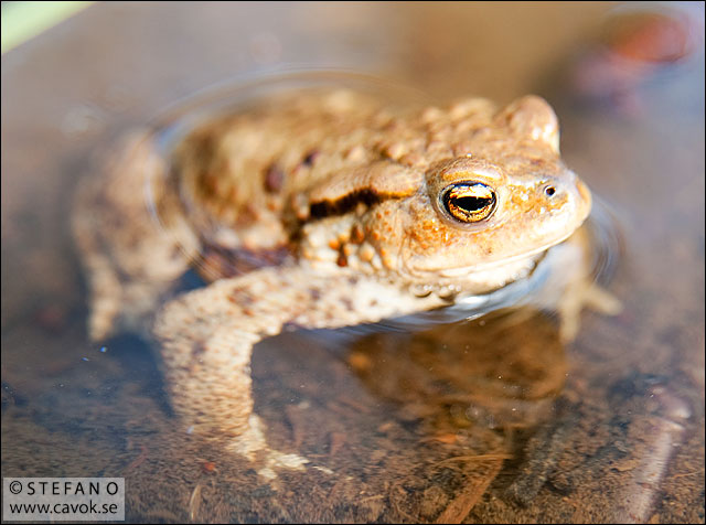 Inte heller var det speciellt svårt att se grodorna i vattnet. Under lekperioden har de väldigt distinkta och vackra färger. Eftersom jag hade teleobjektivet med var det bara att huka sig på behörigt avstånd och ta lite bilder på dem.