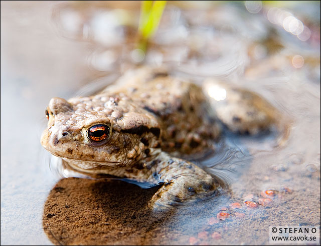 Hmm, jag utlovade ju bilder på små grodor… Men när jag editerade den här bilden insåg jag raskt att det här inte alls är en groda, snarare en padda. Anyways, paddor är precis lika skojiga djur som grodor. Igår såg jag hundratals vid en damm i skogen. Det är deras parningstid just nu och då är de inte alls lika rädda som vanligt. Somliga låter sig gärna fotograferas utan att skutta iväg. Som den här lille gynnaren. Jag gillar speciellt den läckra färgen på ögat.