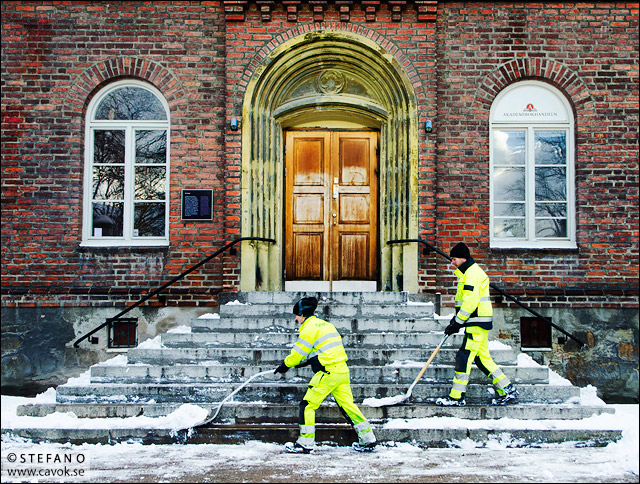 Som ni ser var snöröjningen i full gång vid trappan till AF-borgen.